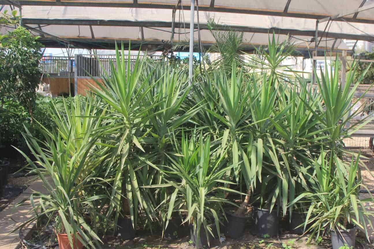 יוקה הוא עץ נהדר עם עלים מחודדים וארוכים וגזע עבה.